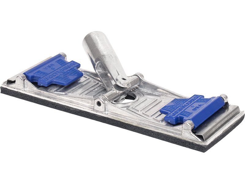 Der Marshalltown Stangenschleiferkopf verfügt über eine flache, rutschfeste Schwenkhalterung, die ihn zu einem idealen Werkzeug zum Schleifen von Trockenbau-Fugen macht, bis sie bündig mit den umgebenden Wänden sind. Der Schleifer besteht aus leichtem, verstärktem Aluminiumdruckguss und ist für zusätzliche Haltbarkeit mit einem Schaumgummipad verbunden. Das Blatt verfügt über Schnellwechsel-Verriegelungsklemmen für einen schnelleren Austausch des Schleifpapiers. Es kann jedes herkömmliche Schleifpapier verwendet werden, wie auch das Schleifpapier von Marshalltown.