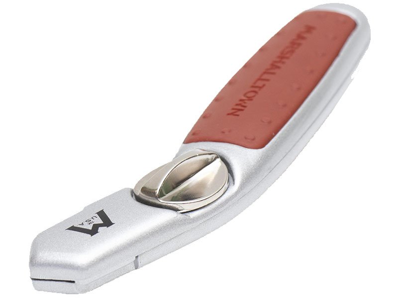 Präzises Marshalltown Teppichmesser aus Zink mit Softgrip-Griff, Magnetklingenhalter und großem Rändelknopf für einfaches Öffnen. Ideal für Teppichböden.