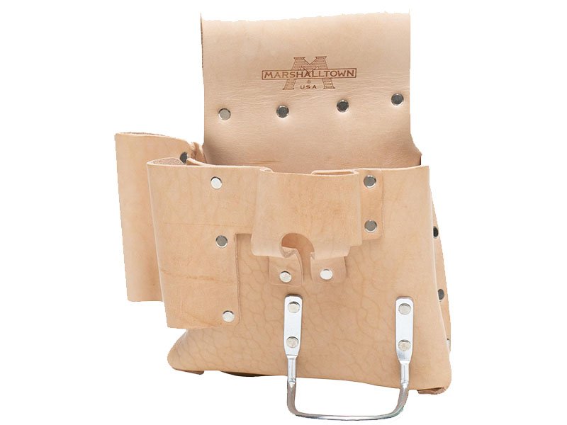 Die Marshalltown Trockenbau-Werkzeugtasche aus Sattelleder hält Ihre Werkzeuge griffbereit und bietet viel Platz. Verstärkt mit Nieten für Langlebigkeit. Maße: 203×242 mm.