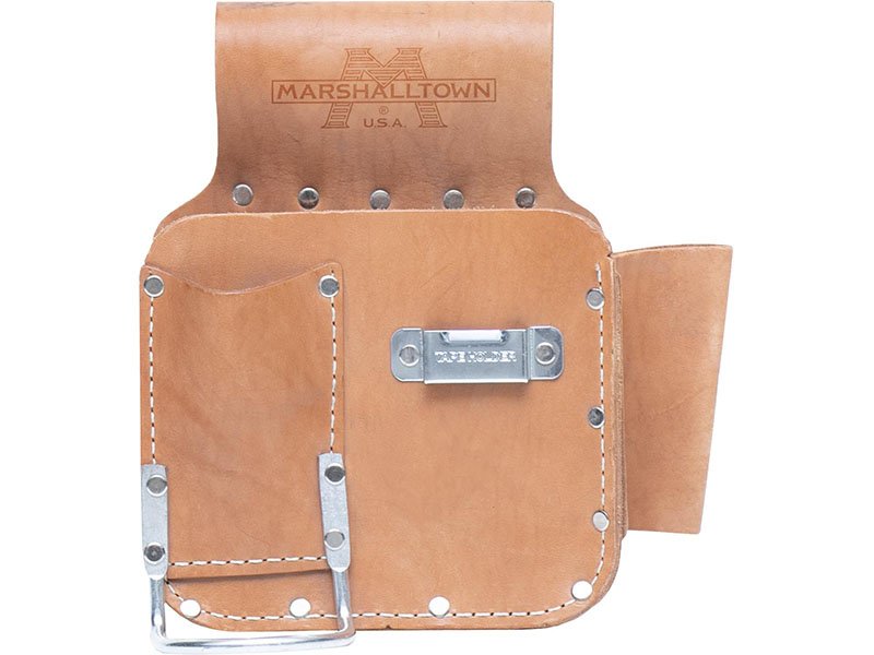 Die Marshalltown Trockenbau-Werkzeugtasche für Linkshänder aus Sattelleder bietet viel Platz und ist verstärkt für Langlebigkeit. Maße: 203×242 mm.