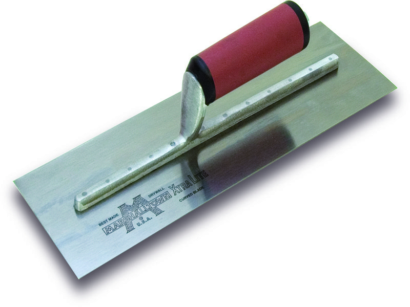 Die Trockenwandkelle von Marshalltown hat ein flexibles Carbonstahlblatt, welches temperiert, geschliffen und poliert ist. Das Blatt hat eine leicht konkave Biegung zum Herstellen von Fugen bei der Endbearbeitung. Die Halterung aus Aluminiumguss ist leicht, aber sehr stark. Das Blatt ist mit gehärteten Edelstahlnieten an der Halterung befestigt. Die Halterung der Glättkelle hat einen Vierkant Schaft, um zu verhindern, dass sich der Griff dreht. Der gerade, patentierte Durasoft Griff bietet ein angenehmes Gefühl, reduziert Ermüdung beim Arbeiten und bietet eine hervorragende Haltbarkeit. Der Griff ist auswechselbar, daher kann man problemlos gegen einen Holzgriff oder einen neuen Durasoft Griff tauschen.