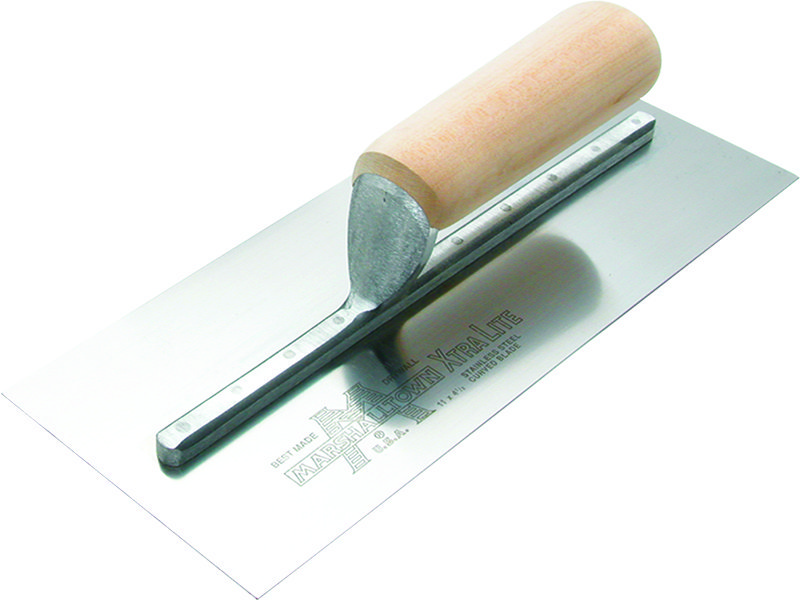 Die Marshalltown Trockenwandkelle hat ein flexibles Edelstahlblatt, eine leichte Aluminiumhalterung und einen bequemen, geraden Hartholzgriff. Perfekt für Fugenarbeiten. Maße: 356×114 mm.