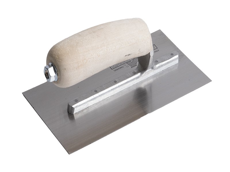 Hochwertige, robuste Glättkelle aus Carbonstahl mit fest verbundenem Blatt und Vierkant-Schaft. Kompakt und ideal für enge Stellen. Belastbarer Holzgriff für komfortables Arbeiten. Maße: 191×102 mm.