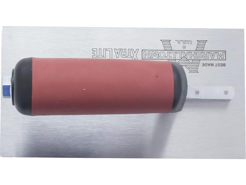 Die Glättkelle von Marshalltown ist hergestellt aus hochwertigem Carbonstahl, sie sehr robust, somit hat man lange Freude an ihr. Das Carbonstahlblatt ist fest mit der Aluminiumgusshalterung verbunden, die einen Vierkant-Schaft hat, damit sich die Kelle nicht dreht. Diese spezielle Kelle ist recht kompakt, damit man die Fläche mit mehr Druck bearbeiten kann, vor allem geeignet für Treppen, Fensterbänke, enge Stellen oder dekorative Flächen. Der belastbare Durasoft Griff ist sicher an die Halterung/Stütze angebracht. Er ist liegt gut in der Hand, das ermöglicht dem Handwerker den ganzen Tag zu arbeiten, ohne das seine Hände schmerzen. Der Griff ist auswechselbar, man kann wählen zwischen einem Holzgriff und einem neuen Durasoft Griff.