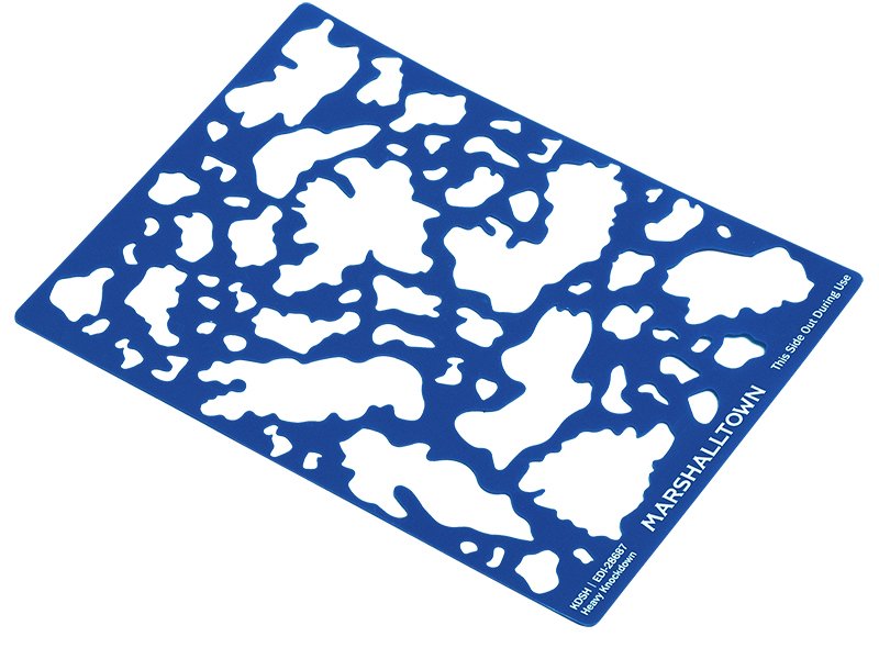 Marshalltown Schablonen für Trockenbau: Einfach anzuwenden, perfekt für Heimwerker und Profis, passend für verschiedene Wandstrukturen. Starke Struktur, blaues Pad.
