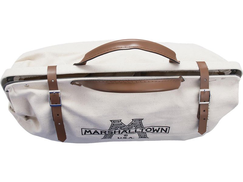 Die Marshalltown Werkzeugtasche ist hergestellt aus strapazierfähigem Canvas mit gestickten Nähten. Der wasserabweisender Masonit Boden hat unten vier Metallbolzen. Die Tasche hat einen Stahlrahmen. Sie hat eine Innentasche, um zu verhindern, dass kleine Werkzeuge verloren gehen.
