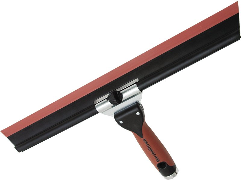 Die Marshalltown Wischerkelle oder Abziehkelle kann im Neigungswinkel von 35 Grad angepasst werden, damit man an alle Decken und Ecken gut herankommen kann. Der Durasoft-Gewindegriff mit Metallzwinge und Aufhängeloch hat ein Innengewinde, damit man problemlos einen Stiel eindrehen kann, das ermöglicht das Arbeiten an Decken oder in hohen Räumen. Das Durasoft-Blatt, das zu einer stoßfestem Wischer geformt ist, gewährleistet eine gleichbleibende Oberflächen und eine lange Lebensdauer, für viele Einsätze. Ersatzblätter ermöglichen die Verwendung unterschiedlicher Blattgrößen an einem Griff, das heißt, Sie brauchen nur einen Griff und können dann die anderen Blätter sehr leicht draufmontieren. Dieses Werkzeug ist hervorragende geeignet für Maler, die eine glatte Oberfläche mit jeder Farbe zaubern wollen. Für Trockenbauer, die Ihre Trockenbaumasse sauber auftragen wollen oder auch für Künstler, die Spachtelmassen verarbeiten wollen. Der Vorteil dieser Wischerkelle ist, Sie können die Oberfläche mit Wasser leicht besprühen und können so ihr Material länger bearbeiten, bis es perfekt ist. Es bleiben keine Rillen oder Vertiefungen, sondern nur eine glatte Oberfläche.