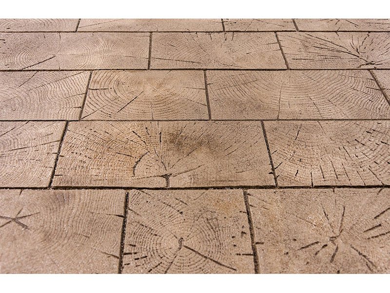 Stempel gibt das Aussehen von Holzpflaster mit der Haltbarkeit von Beton