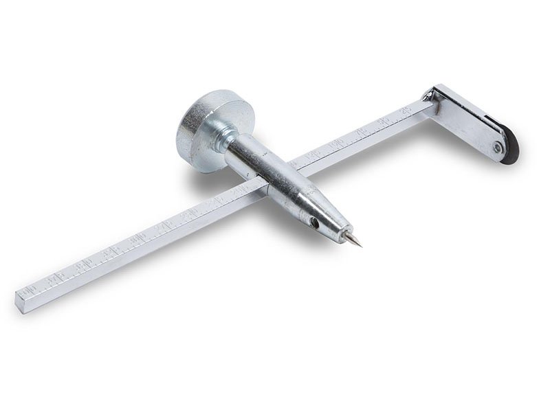 Zirkelschneider schneidet saubere Kreise bis zu 406 mm Durchmesser. Zentrierstift bleibt dauerhaft scharf.