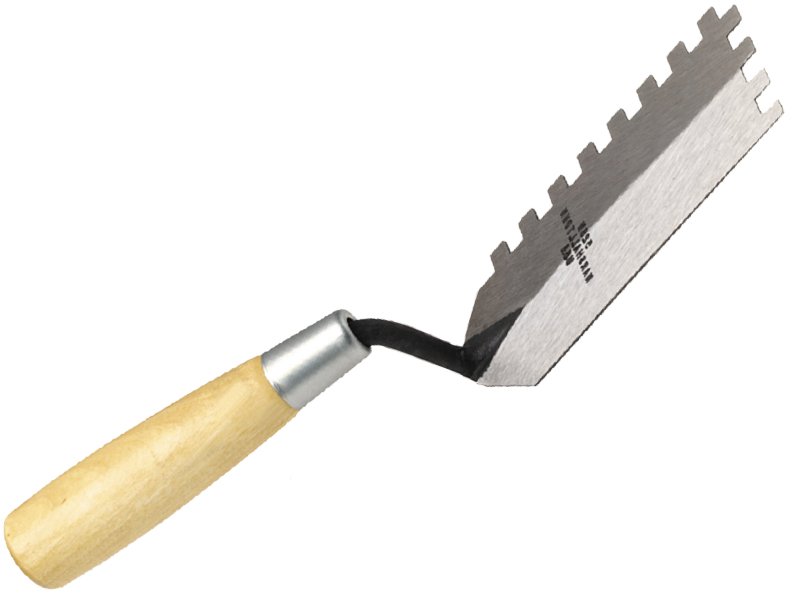 Die zweiseitig gezahnte Randkelle von Marshalltown ist perfekt für enge Räume. Aus einem Stück gefertigt, robust und mit robustem Holzgriff. Abmessung: 127×51 mm, Eckig 6x6x6 mm.