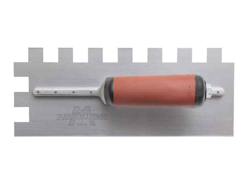 Marshalltown Zweiseitige Gezahnte Kelle, eckig, 19x19x19mm Kerben, Durasoft Griff, Edelstahl, 279×114 mm