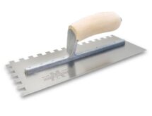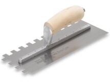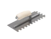 30,90 €Marshalltown Gezahnte Kelle aus Stahl. Komfortabler, gebogener Holzgriff. Eckige Zahnung: 8x8x8 mm. Maße:279×114 mm.