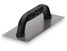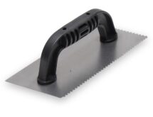 29,90 €Gezahnte Kelle für Linkshänder zum Verlegen von Fliesen und Bodenbelägen. Kontrolliert Klebstoffmenge, Aluminiumguss-Halterung, gehärtetes Stahlblatt, Durasoft Griff. Blattgröße: 279×114 mm. Eckig 6x6x6 mm.