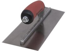 Marshalltown Gezahnte und einseitig gekürzte Kelle, U-1,5×1,5×1,5 mm, Durasoft Griff, Stahl, Maße: 279×114 mm
