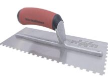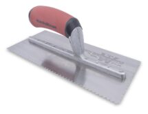Marshalltown Gezahnte und einseitig gekürzte Kelle, Eckig 1,5×1,5×1,5 mm, Durasoft Griff, Stahl, Maße: 279×114 mm