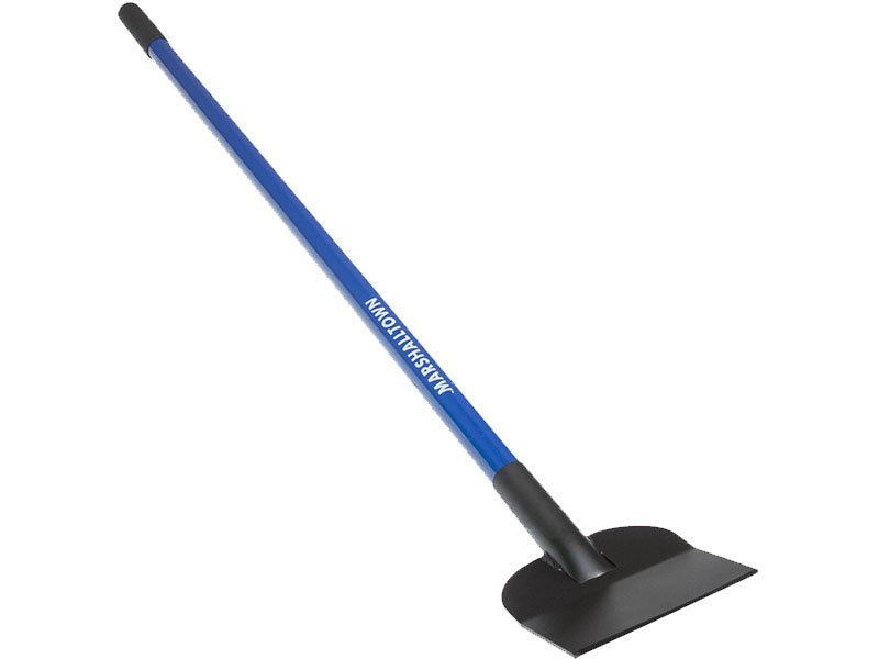 Marshalltowns gebogener Bodenschaber: Entfernt verschiedene Bodenbeläge, 30° abgewinkelte Klinge für bessere Haltung, leicht und vielseitig. Maße: 1473×152 mm.
