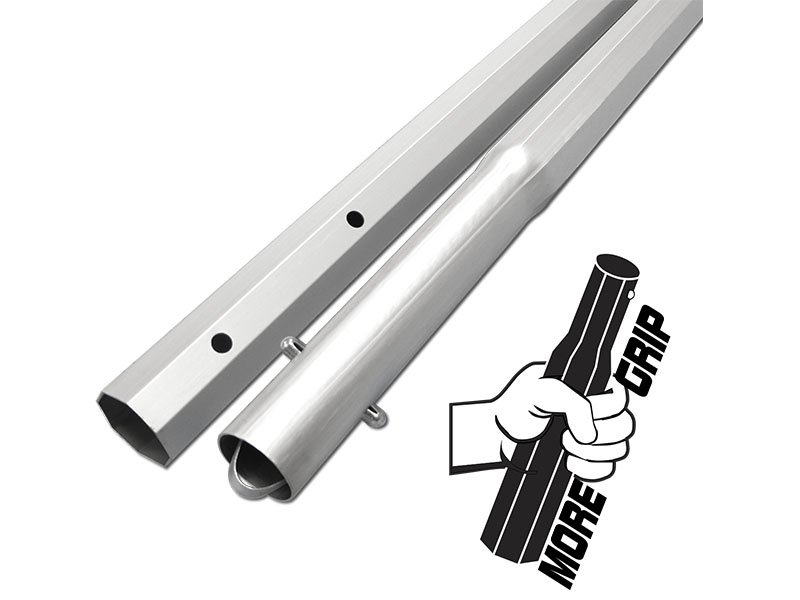 Die Octagon Stange von Marshalltown hat eine achteckige Oberfläche für besseren Grip und ermöglicht, dass der Griff auch bei nassen oder verschwitzten Händen nicht abrutscht. Die Druckknopf-Schnappfeder verriegelt die Stange sicher mit dem Kippgelenk oder eine weitere Octagon Stange. Die Octagon Stange ist hergestellt aus einem Aluminiumrohr, welches einen Durchmesser von 44 mm hat. Die silberne Pulverbeschichtung verhindert die Oxidation durch abfärbende Hände.