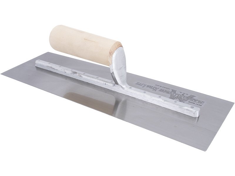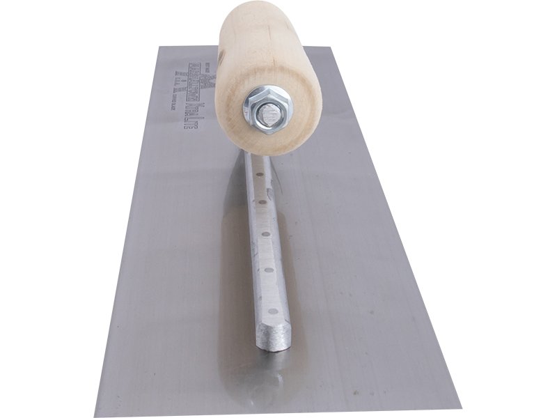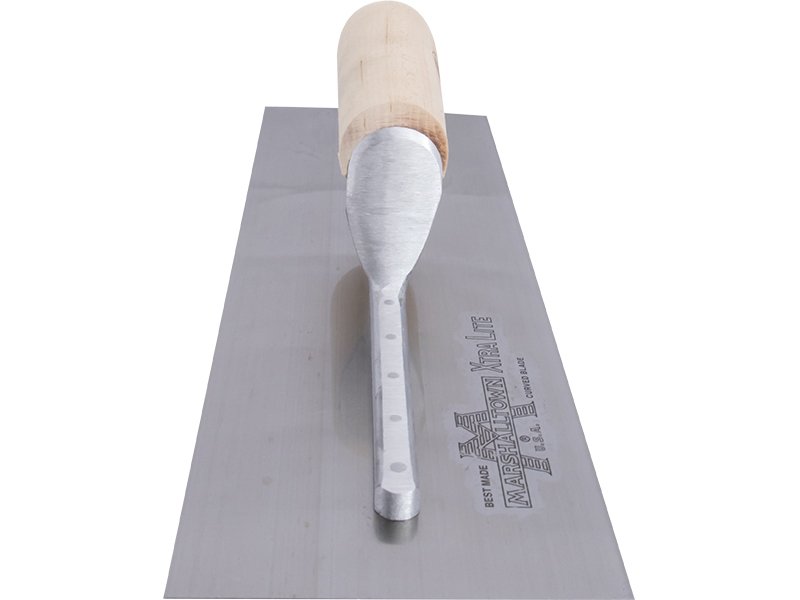 Die Trockenwandkelle von Marshalltown hat ein flexibles Carbonstahlblatt, welches temperiert, geschliffen und poliert ist. Das Blatt hat eine leicht konkave Biegung zum Herstellen von Fugen bei der Endbearbeitung. Die Halterung aus Aluminiumguss ist leicht, aber sehr stark. Das Blatt ist mit gehärteten Edelstahlnieten an der Halterung befestigt. Die Halterung der Glättkelle hat einen Vierkant Schaft, um zu verhindern, dass sich der Griff dreht. Der gerader Hartholzgriff liegt gut in der Hand und ermöglicht durch seine Form, den ganzen Tag angenehm zu arbeiten.
