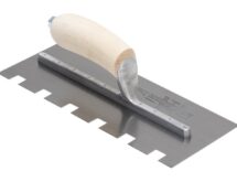 Marshalltown Gezahnte Kelle, Eckig 10x10x10 mm, Gebogener Holzgriff, Stahl, Maße: 279×114 mm