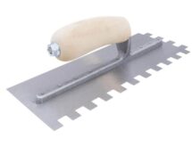 Marshalltown QLT Gezahnte Kelle, Eckig13x13x13 mm, Holzgriff, Stahl, Maße: 279×114 mm